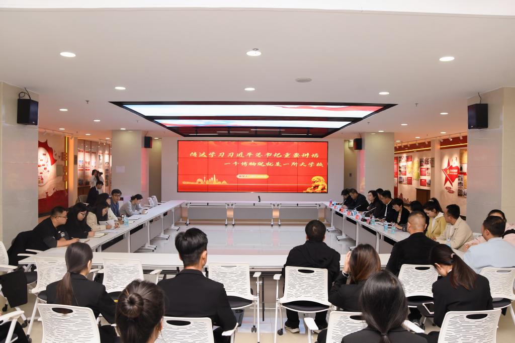 旅游学院党总支书记李少华教授发表了讲话,领学了习近平总书记“一个博物院就是一所大学校”的重要讲话精神,带领双方党员重温了入党誓词,在学校地质园、地质博物馆和红色旅游大厅实地开展了地质文化、核工业精神和红色革命精神研学活动。