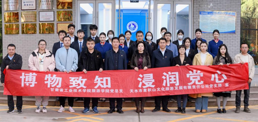 11月6日,旅游学院党总支与天水市麦积山文化旅游发展有限责任公司党支部携手开展了一场别开生面的主题党日结对活动。活动深入贯彻落实习近平总书记视察天水的重要指示和讲话精神,以发挥党建示范引领作用,提升党建工作水平,切实加强党支部间的交流与合作,实现党组织间的优势互补为目的,努力构建“资源共享、优势互补、互相赋能、共同提高”的党建工作新格局。活动由旅游学院党总支副书记、副院长李玉林教授主持,双方党员共计30余人参加。
