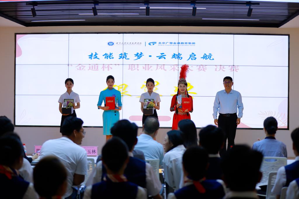 5月15日,我校旅游学院与北京广慧金通教育集团联合主办的首届“技能筑梦·云端启航”职业风采大赛在红色旅游中心大厅圆满收官。本次活动作为校企协同育人的创新实践,通过“赛教融合”模式有效检验了空乘专业产教融合的教学成果,标志着学院产教融合战略迈入新阶段。