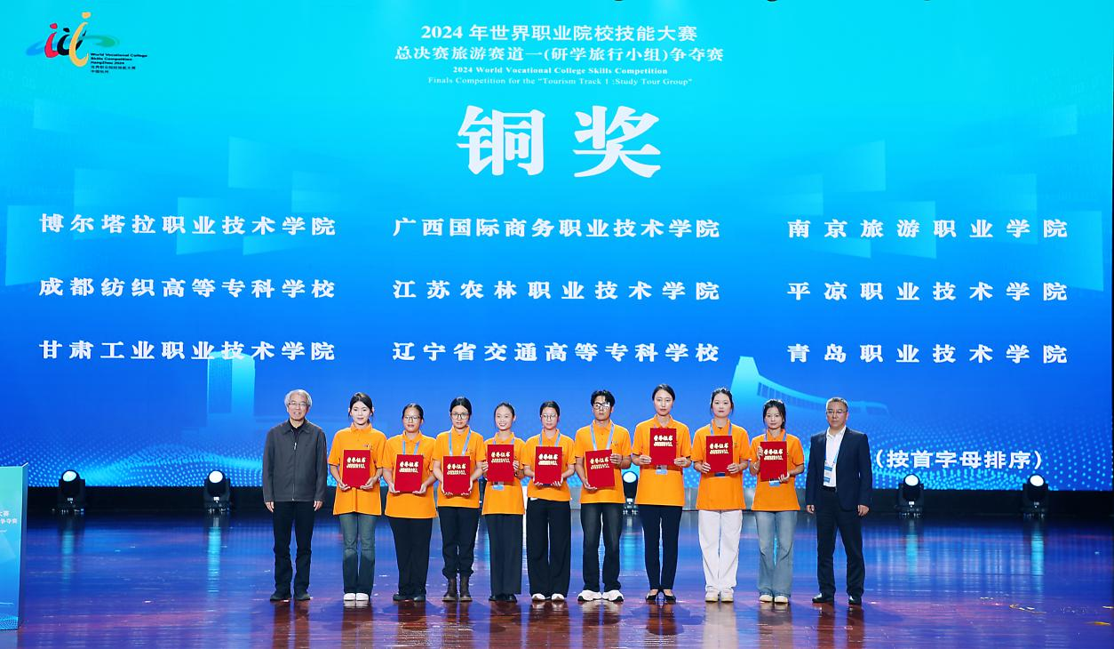 研学旅行赛项是2024年世界职业院校技能大赛的新设赛项,参赛团队面对新赛规则下的新赛项,敢打敢拼,勇于创新,最终勇夺小组第四,获得铜奖。