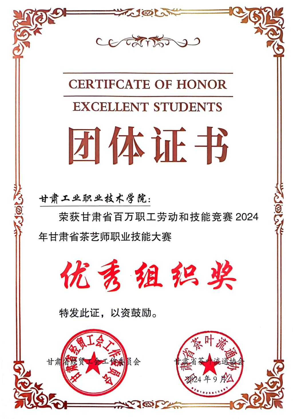 秋风送爽,金叶满园。9月22日,由甘肃省经贸工会工作委员会、甘肃省茶叶流通协会主办的甘肃省百万职工劳动和技能竞赛2024年甘肃省茶艺师职业技能大赛决赛在西北师范大学圆满落幕。全省8支参赛队、31名参赛队员激烈角逐后,甘肃工业职业技术学院派出3名参赛队员参加本次大赛,经过激烈角逐,选手吴建华、张宸翔获优胜奖,甘肃工业职业技术学院荣获优秀组织奖。