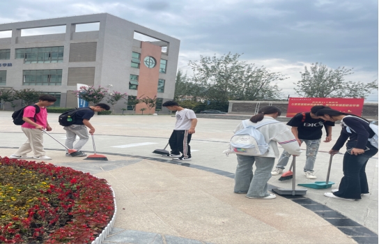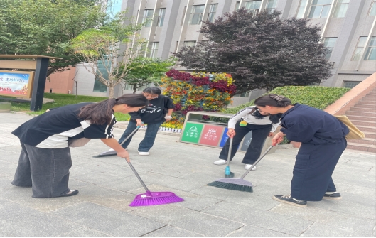 清扫过程中,大家不怕脏、不怕累——面对黏在地面的铅笔屑,志愿者蹲下身用手仔细捡拾;看到窗户缝隙积灰,便找来小刷子耐心清理,落叶与细小杂物,连台阶缝隙里的灰尘也不放过;擦拭组蘸取温水与清洁剂,认真擦拭公共扶手、宣传栏玻璃、让设施重焕干净光泽;垃圾分类组则将收集的垃圾按“可回收”“其他垃圾”分类投放,过程中,遇到黏在地面的顽固污渍,同学们主动接力,用小铲子反复清理;看到同学工具不够,大家主动分享,彼此协作的身影成为现场最暖的风景。