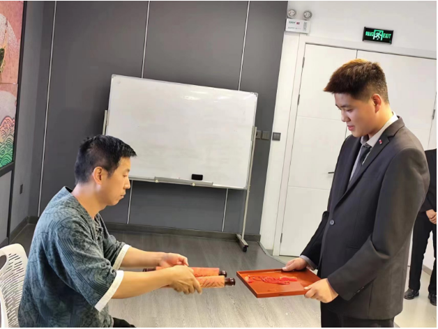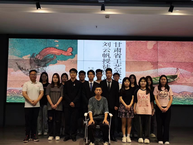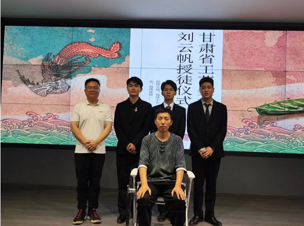 甘肃工艺美术大师,刺绣非遗传承人刘云帆坐上拜师椅,旅游学院酒店管理与数字化运营专业的3名学生集体向传承人师傅敬茶、呈递拜师帖,师傅接茶、回礼。整个过程简洁且不失庄重。拜师仪式上,刘云帆依照古礼收下徒弟,在旅游学院副院长安敏杰的见证下,接受了拜师帖,武辉文、姚锦右、韩帅帅三位弟子拜入门下。