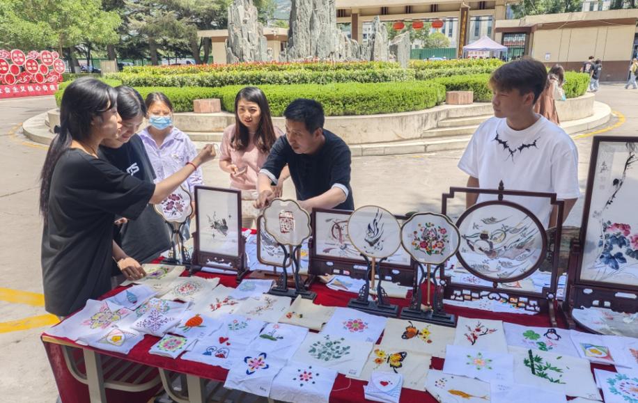 除了展示和讲解环节,活动还设置了互动体验区,让广大学子亲手尝试制作陇绣作品,通过亲手制作陇绣作品,不仅感受到了传统文化的魅力,也增强了文化自信和文化传承意识。