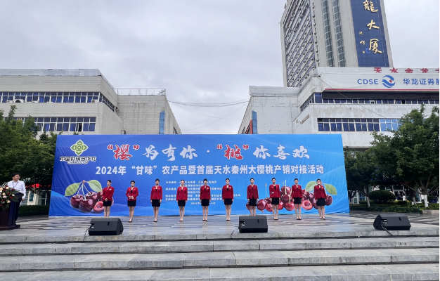 2024年6月3日,“樱”为有你,“桃”你喜欢“甘味”农产品暨天水秦州大樱桃产销对接大会在天水龙城广场举行。旅游学院“龙马”会务队全程参与各项接待、礼仪保障工作。