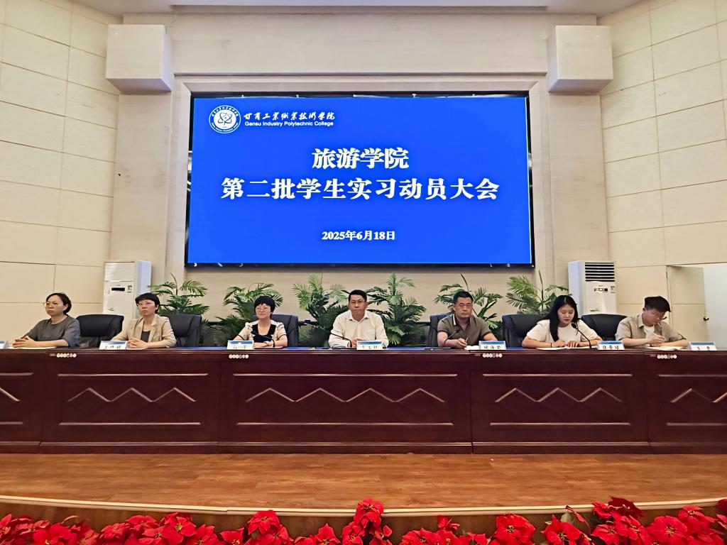 为强化学生专业实践能力,提升综合职业素养,推动理论知识向实践技能转化,6月18日,旅游学院在图书馆五楼报告厅召开2023级空中乘务、高速铁路客运服务及酒店管理与数字化运营专业学生实习动员大会。学院院长李玉林、副院长刘芳、副书记侯海荣、相关专业主任、就业干事、2023级辅导员和全体学生参会。