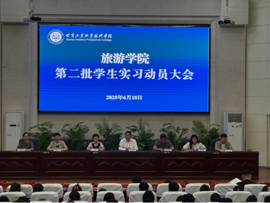 2025年6月18日,旅游学院在图书馆五楼报告厅召开2023级空中乘务、高速铁路客运服务、酒店管理与数字化运营三个专业学生实习动员大会。旅游学院全体班子成员、三位专业主任、就业干事、辅导员及2023级实习学生参会。会议由院长李玉林教授主持。