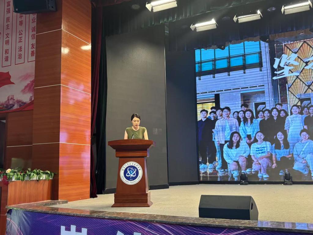 动员大会以一段刚柔并济的形象展示《无界蓝天·舞绘山河》正式拉开帷幕。广慧金通公司驻校教学负责人董洁详细解读了2025年大赛规程,系统介绍了备赛以来的训练成果与阶段性进展。驻校教师张吉玮特别介绍了大赛期间同步开展的大学生供需对接系列就业活动,他指出:“这不仅是技能比拼的舞台,更是同学们与行业企业直面交流的重要契机,希望大家以赛促学、以赛促业。”
