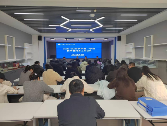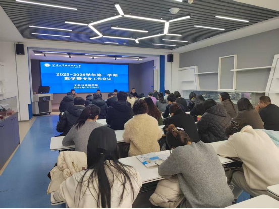 为统筹推进学期末教学收尾工作,规范考试流程,明确各项任务要求,12月24日下午,文化与旅游学院在智慧旅游C+实训室一楼会议室召开2025-2026学年第一学期教学暨考务工作会议。会议由副院长主持,学院领导班子及全体教职工参加。