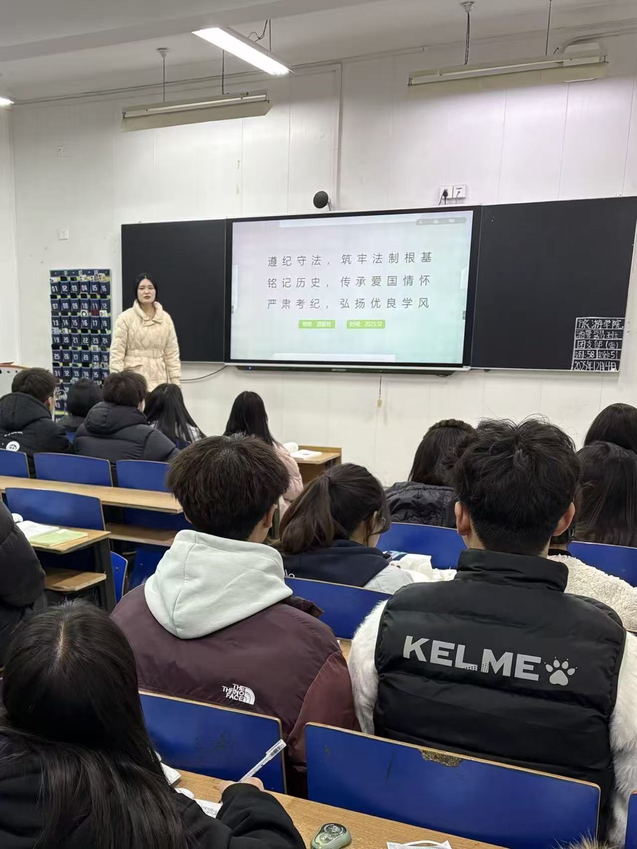 结合期末复习备考,“严肃考纪,弘扬优良学风”环节聚焦诚信教育,组织学生集中学习《甘肃工业职业技术大学学生违纪处分条例(试行)》中考试违纪作弊相关规定,通过真实案例警示学生敬畏考纪。全体学生在《诚信考试倡议书》上签名承诺,班级学习优异学生分享了高效复习技巧,班主任/辅导员进行备考心理疏导,有效缓解了学生备考压力,营造了“公平竞争、诚信备考”的优良氛围。