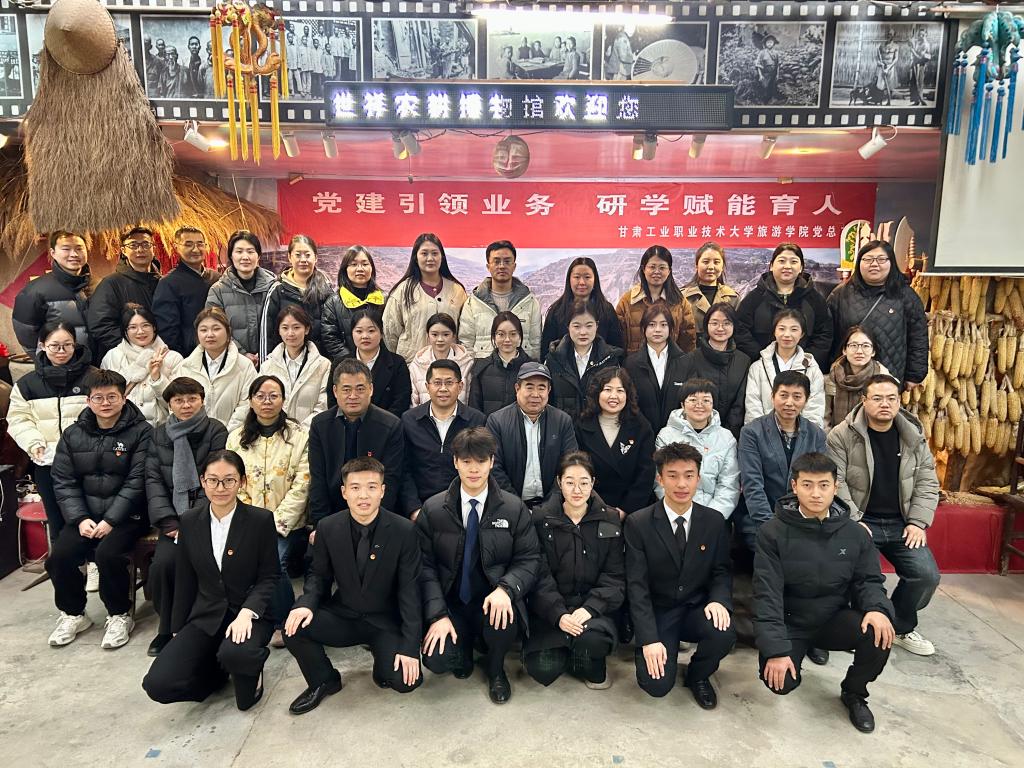 为深入贯彻落实党的二十届四中全会精神,推动职业教育与红色基因、劳动教育深度融合,11月26日,旅游学院党总支组织全体党员、入党积极分子、优秀团员代表赴天水世祥农耕记忆博物馆,隆重举行红色研学基地挂牌仪式暨主题党日活动。此次活动以“党建引领、专业赋能、文化铸魂”为主线,聚焦“农耕文化+红色教育”融合路径,是旅游学院党总支推进省级双优党支部建设、践行“三全育人”理念的又一重要举措。