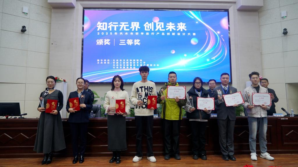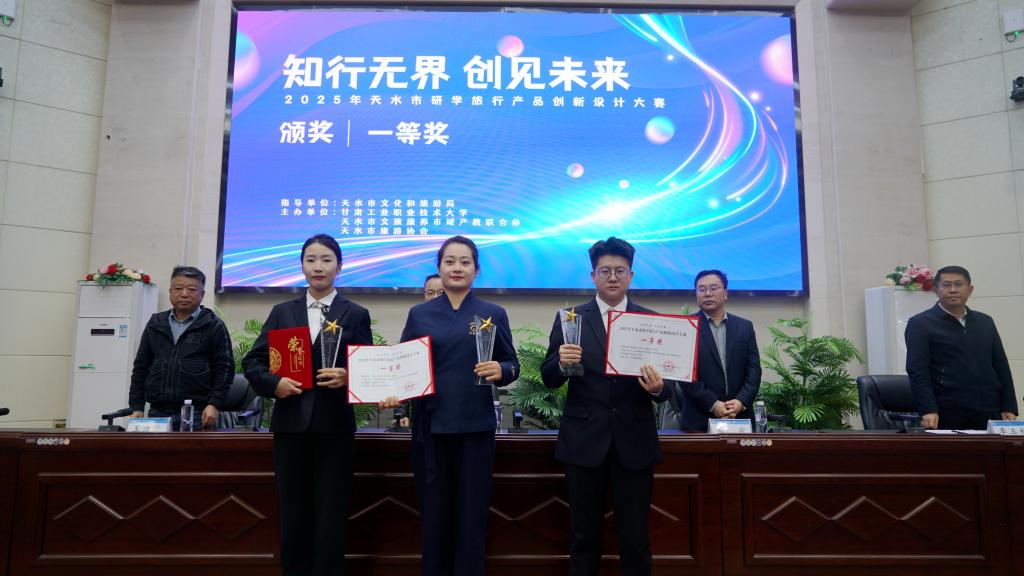 2025年10月18日至19日,由天水市文化和旅游局指导、甘肃工业职业技术大学主办,天水市文旅康养市域产教联合体与天水市旅游协会共同承办的“知行无界 创见未来”研学旅行产品创新设计大赛在甘肃工业职业技术大学成功举办。全市26支参赛队伍齐聚一堂,在为期两天的赛程中展开激烈角逐。