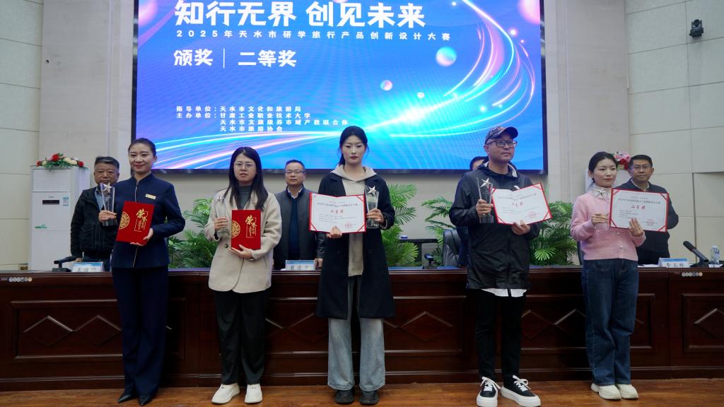 经专业评审,大赛共评选出一等奖3项、二等奖5项、三等奖8项及优秀奖9项。甘肃工业职业技术大学报送的《厚植智造基因,解码科技新篇——研学旅行产品设计方案》、壹佰仟旅行有限公司打造的“寻脉羲皇故里,对话千年文明”历史文化主题研学课程,以及天水市博物馆研发的《畅游伏羲古庙,探寻祖脉文化》研学课程,凭借独特的设计视角、丰富的文化内涵和创新的表现形式,荣获一等奖。