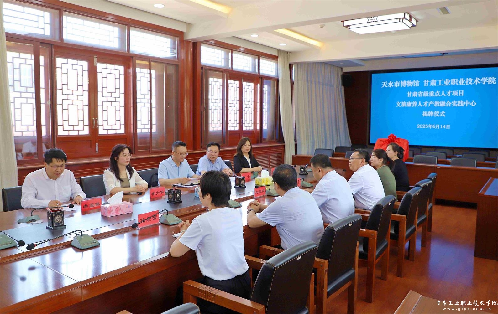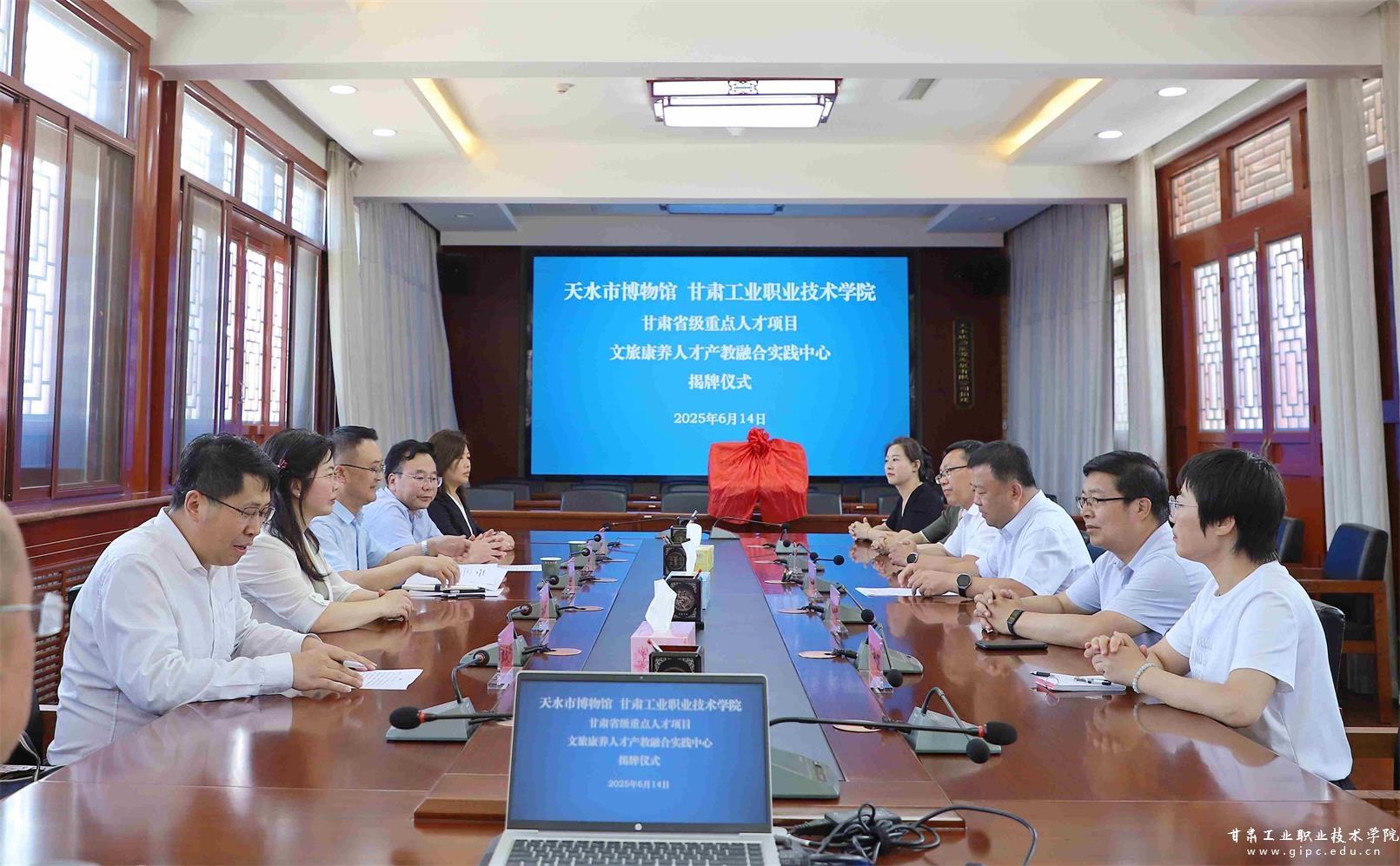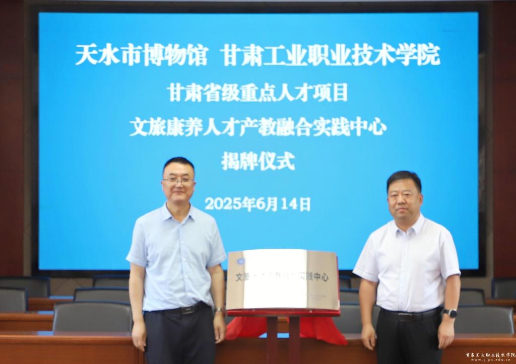 6月14日,由我校党委书记坚葆林领衔的甘肃省重点人才项目《文旅康养人才产教融合实践中心》揭牌仪式在天水市博物馆伏羲学院畅和轩举行。适值2025(乙巳)年公祭中华人文始祖伏羲大典前夕,我校与天水市博物馆携手推进文旅康养人才培养机制创新。