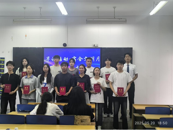 最后,殷老师为早读活动先进个人和宿舍文明月优秀宿舍集体颁发了荣誉证书和奖品,以表彰他们在活动中的杰出表现。