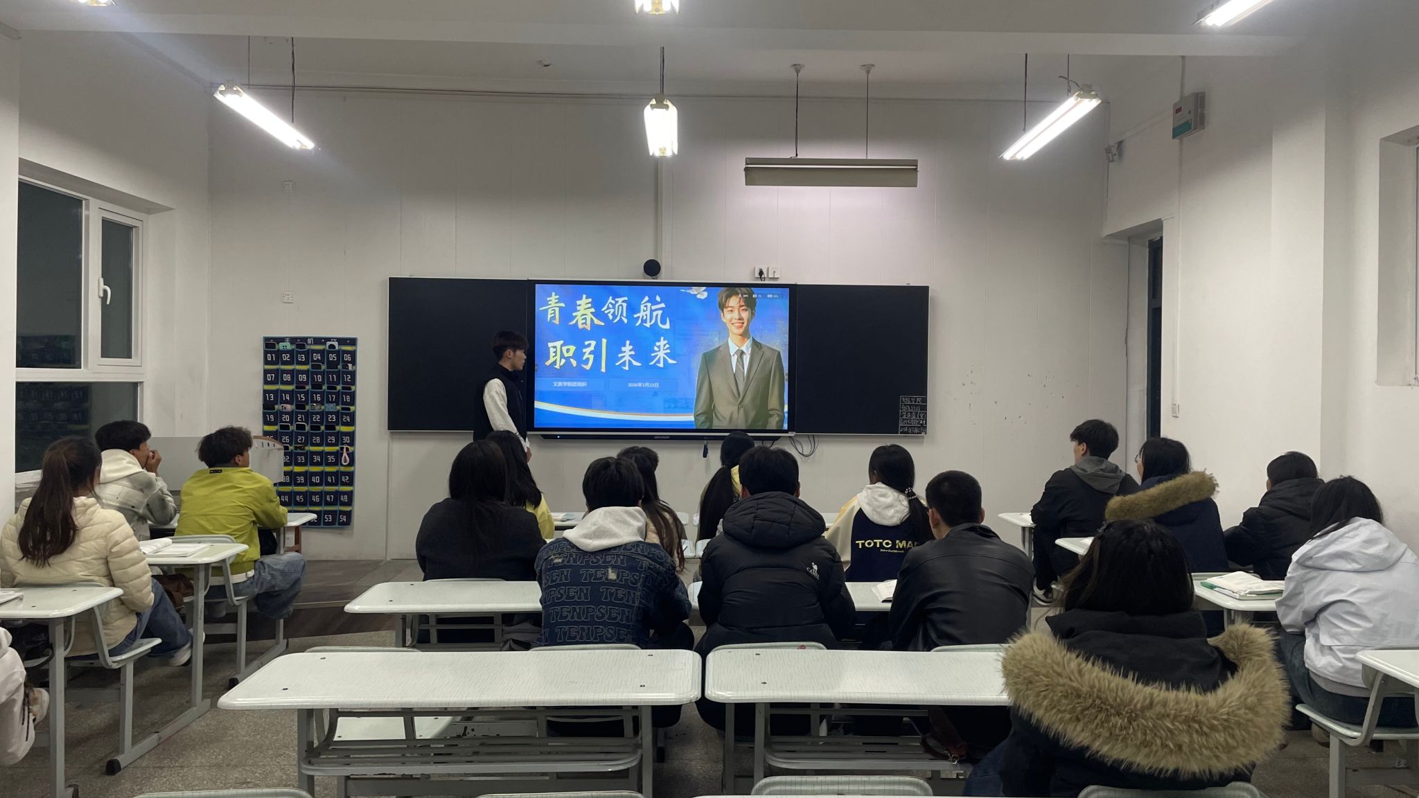 为深入贯彻落实共青团促进大学生就业行动部署要求,切实加强青年学生就业观念引导、提升职业规划能力,3月23日,甘肃工业职业技术大学文旅学院团委宣传部以班级为单位,面向全院各班集中开展“就业引航”主题班会。